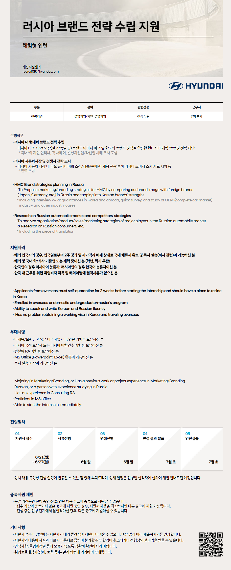 | [¸ðÁý/Ãë¾÷] [Çö´ëÀÚµ¿Â÷] ·¯½Ã¾Æ ±¹Àû ¿Ü±¹ÀÎ ´ë»ó üÇèÇü ÀÎÅÏ Ã¤¿ë °ø°í | ||||||