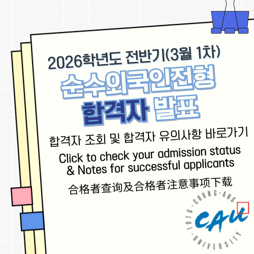 | [ÇкÎ] 2026Çг⵵ Àü¹Ý±â 1Â÷ (3¿ù ÀÔÇÐ 1Â÷) ÇкΠ¼ø¼ö¿Ü±¹ÀÎÀüÇü ÇÕ°ÝÀÚ Á¶È¸ ¹× À¯ÀÇ»çÇ× ¾È³» | ||||||