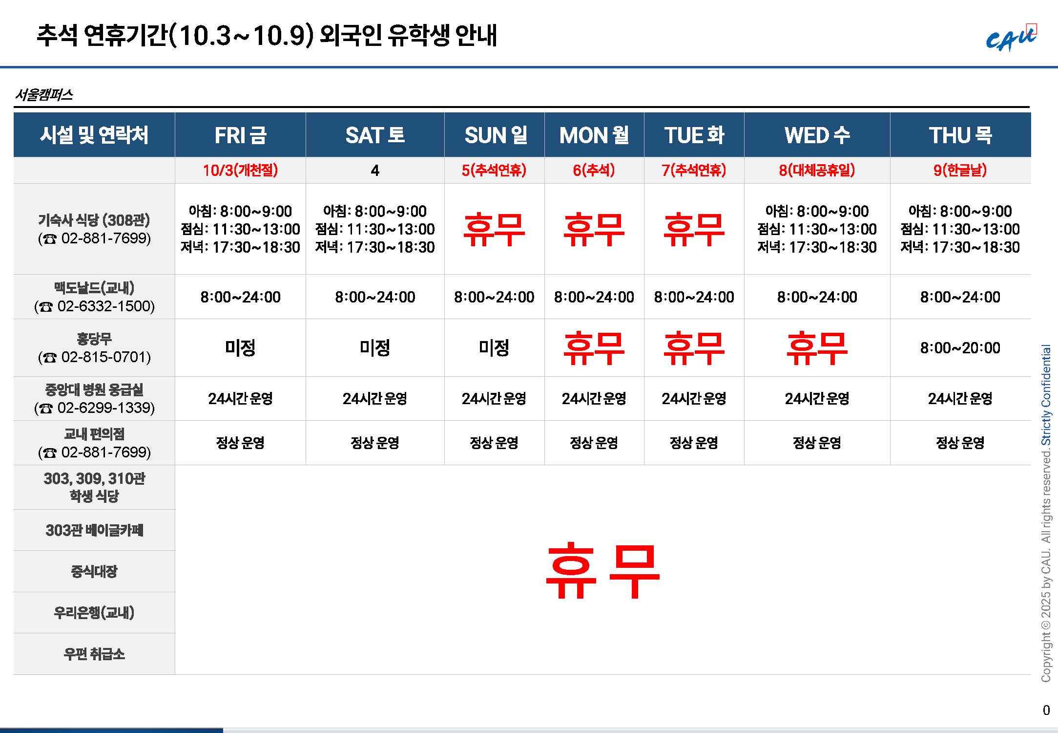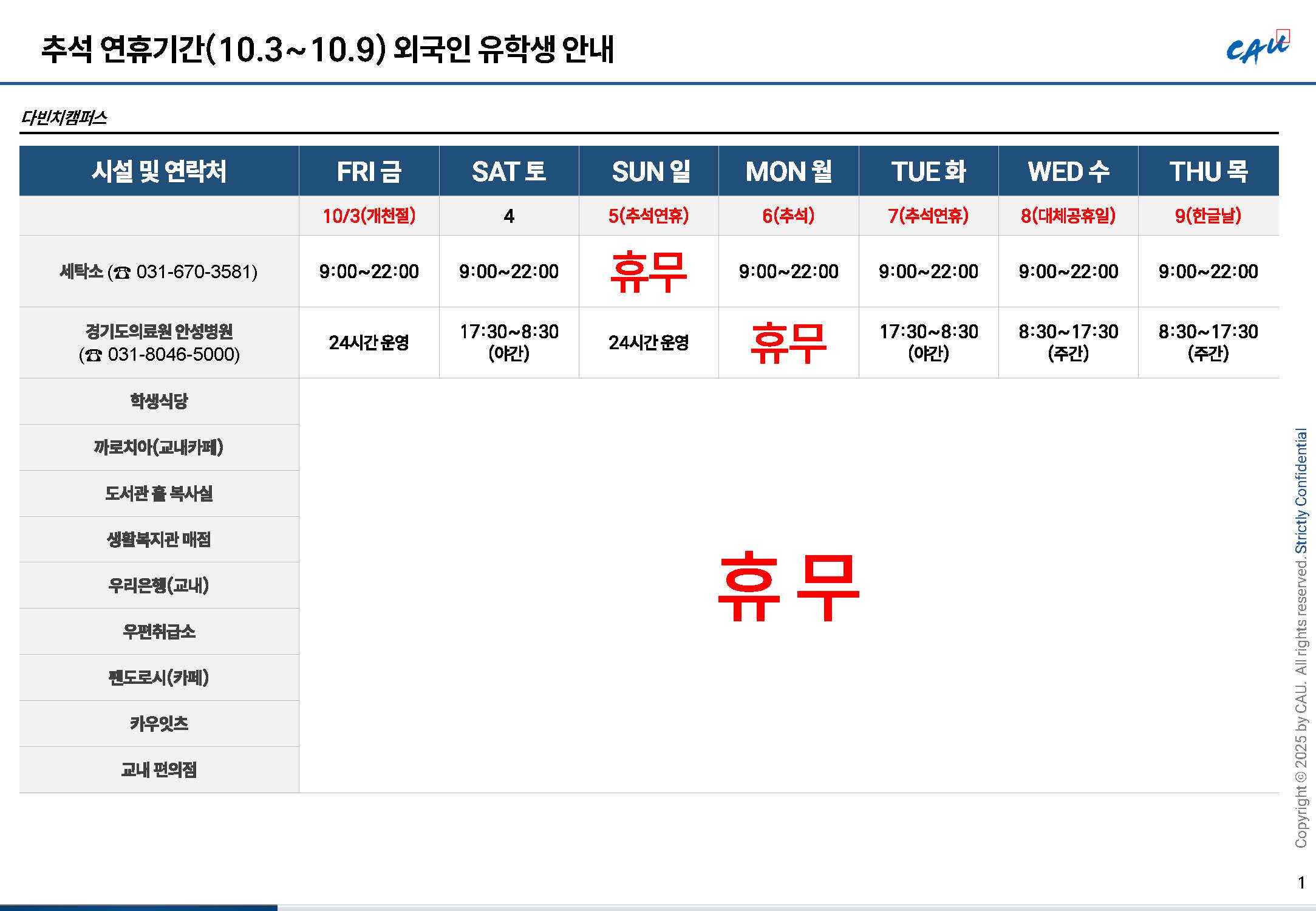 To ensure that international students experience no inconvenience during the upcoming Chuseok holiday,