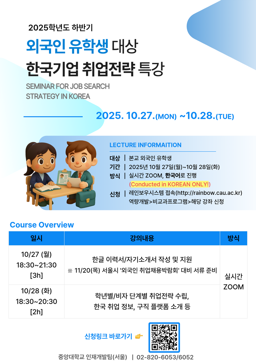 | [¸ðÁý/Ãë¾÷] 2025Çг⵵ ÇϹݱ⠿ܱ¹ÀÎ À¯Çлý ´ë»ó Çѱ¹±â¾÷ Ãë¾÷Àü·« Ư°(ÀϽÃ:10/27-28) | ||||||
