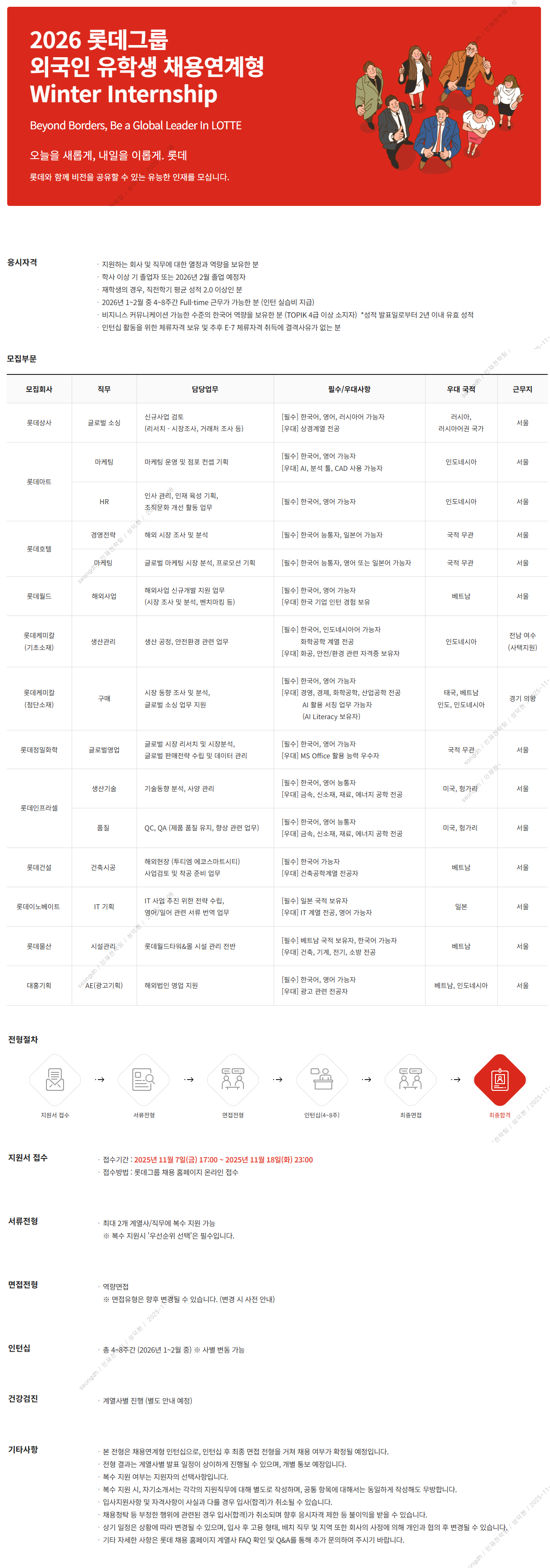 | [¸ðÁý/Ãë¾÷] [·Ôµ¥±×·ì] ¿Ü±¹ÀÎ À¯Çлý ä¿ë¿¬°èÇü Winter Internship(¸ðÁý:11/7-11/18) | ||||||