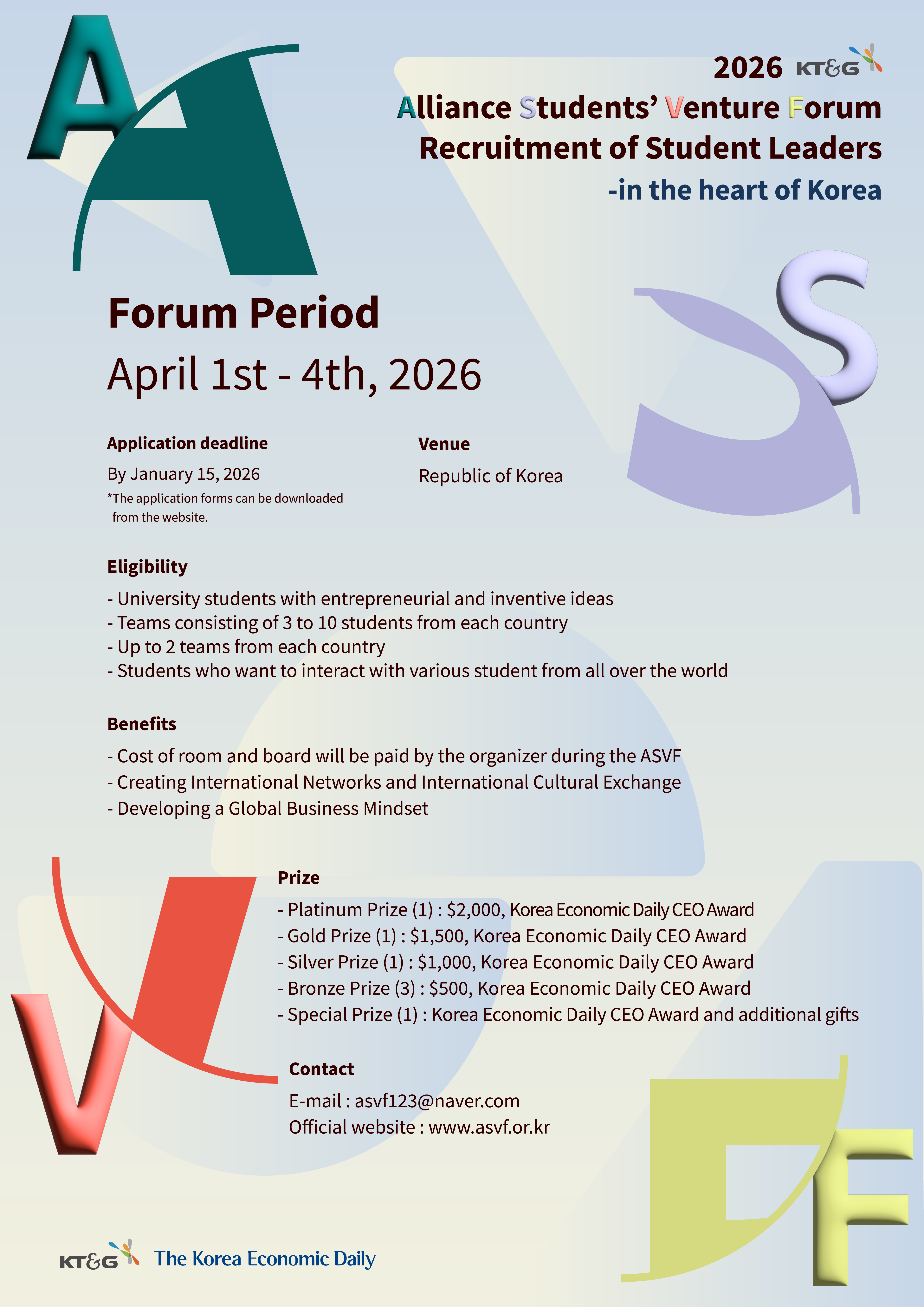 | ÷ºÎÆÄÀÏ Application form_2026 ASVF.doc Guidelines for applicants 2026 ASVF.docx The Korea Economic Daily 2025 ASVF newspaper_25.4.4.pdf | ||||||