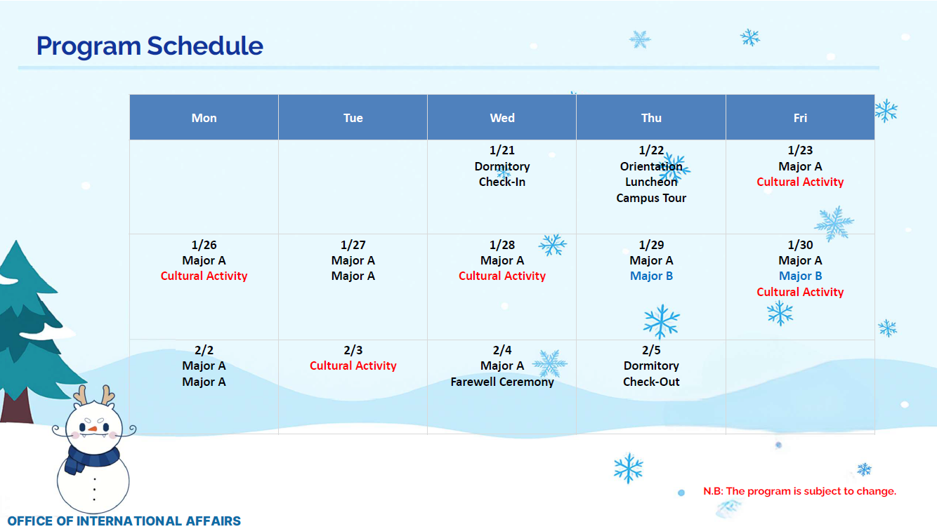 Major B | 1 | Special Lectures related to K-culture along with Cultural Activities |
