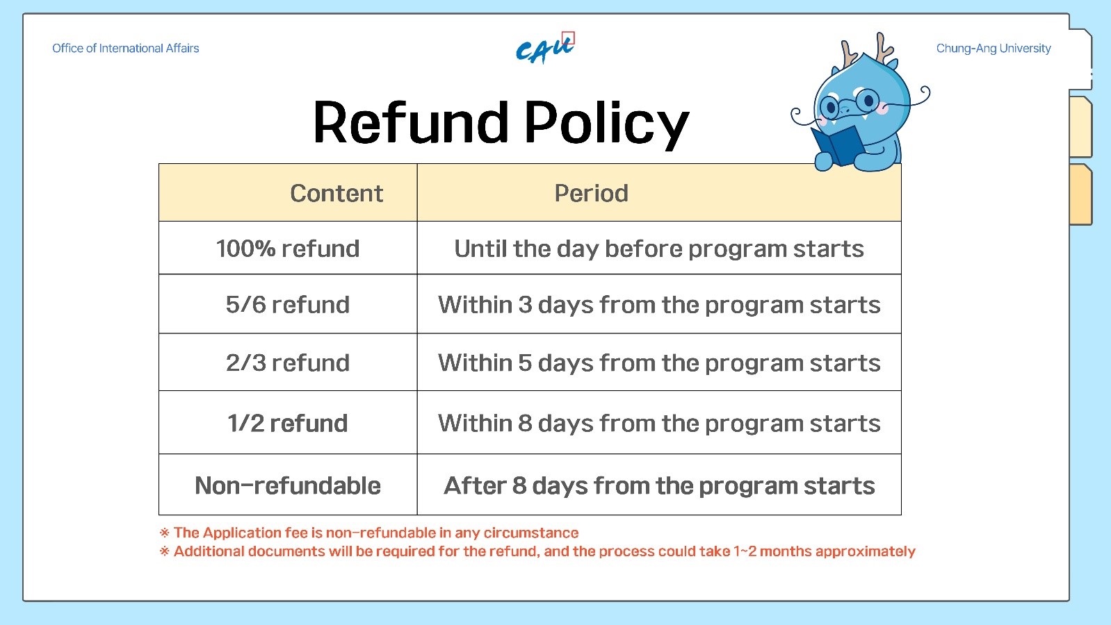 | STEP4 | Please transfer the fee in a designated period after you receive an invoice from CAU. | |